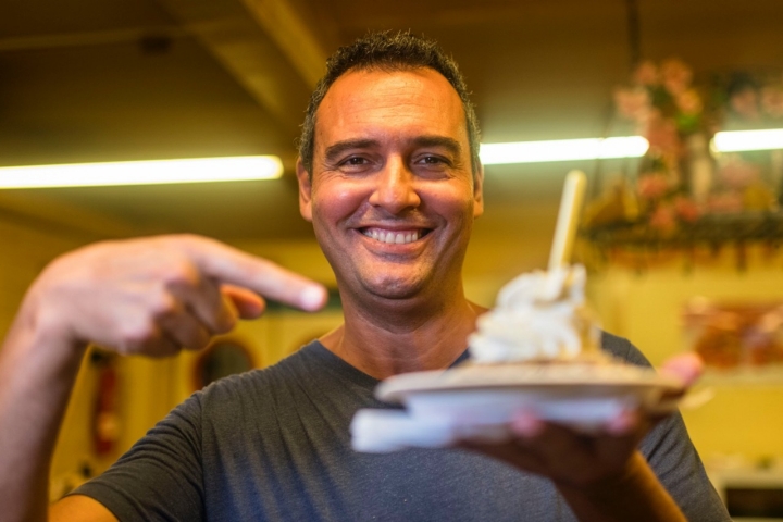 Acabamos el recorrido gastronómico por Sitges de la mano de Oriol Castro con dos paradas dulces. La primera es en la heladería 'Olivier', “que es una escapada habitual con mi mujer y mis hijos”. El favorito del chef catalán, además de la refrescante horchata, es el helado de nata con cerezas amarenas. Aquí todas las elaboraciones son artesanales y se preparan al día, según su propietaria, Sara Miranda, nuera del fundador que montó el negocio en 1958.