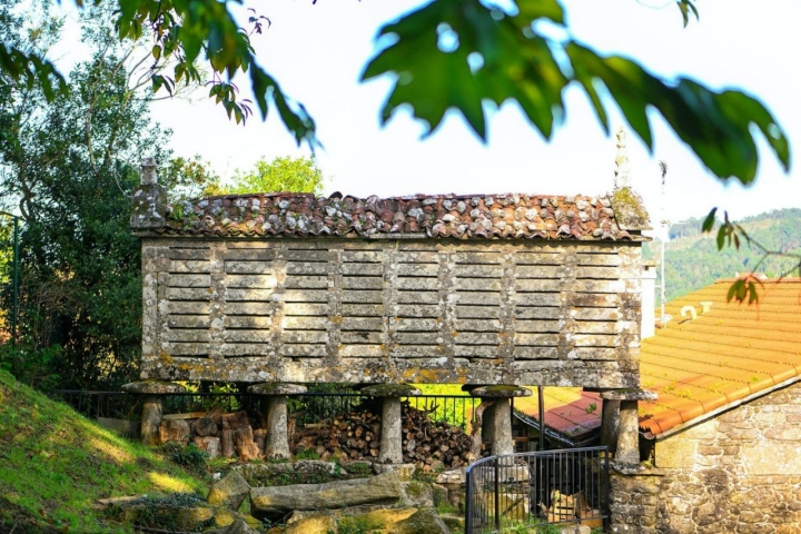 Cuando el tiempo lo permite o el cuerpo pide aire fresco, la finca ofrece un contacto con la naturaleza ya al pie de la casa, en una parcela de más de 4.500 metros cuadrados cuidada y pensada para disfrutar al máximo de la naturaleza. No faltan una zona empedrada con grandes losas centenarias, una zona ajardinada y un bosque autóctono con dos hórreos y ejemplares centenarios de castaño, roble, acebo, naranjo, tejo, nogal o manzanos. Ese exterior es parte de la experiencia y del encanto de ‘Arrueiro’ y Victor y Luisa lo aprovechan para ofrecer estancias inolvidables y adaptadas a la temporada. En otoño, ofertan un taller de setas que empieza recolectando en el bosque y con una clase práctica a orillas de la lareira. Es tan solo un ejemplo de la lista de talleres y experiencias que ofrecen. Catas de vinos y quesos taller de cestería ya han cosechado gran éxito de acogida