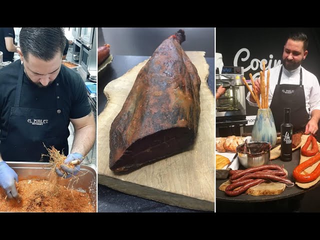 Esa vivencia, y el deseo de mostrar algo impactante a la manera de la mesa del jefe del mar, Quique Dacosta (esa ventresca de atún rojo y esa hueva de mújol curadas en su túnel de la sal…), fueron años después detonante de esta bendita locura prensada en tripa natural de cordero, ternera y cerdo. Pero nuestro protagonista quiso ir más allá y perfeccionó la técnica junto a su suegra, Isabel Herrero, quien regenta la 'Carnicería Isabel' en Picanya, un pueblo pegado a Valencia capital. La suma de componentes emocionales y racionales derivaron nuevamente en unas creaciones dignas de elogio que a continuación presenta el propio autor.