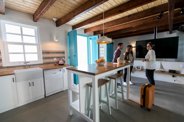 Igual que el mobiliario, la decoración está pensanda al milímetro: desde las mantas que adornan las camas y sofás, a las velas perfumadas de los baños, los jaboncitos de Rituals Cosmetics, la tetera a juego con la nevera, un bonito bloc de notas sobre la mesa o la cesta de bienvenida que Pilar prepara con mimo. "Ofrecemos una cesta para el cliente con almendras, patatas fritas y cookies que elaboramos en nuestro restaurante", relata esta valenciana que dejó su profesión como publicista por su nueva vocación: la cocina.