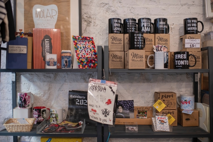 ‘Molar’ se encuentra en la calle Ruda, una de las vías comerciales más interesantes de La Latina. “Cuando empezamos había almacenes de ‘al por mayor’ y esto estaba desierto de comercios. Cuando cerraron aquellas tiendas la calle se ha abierto a negocios interesantes”. Su cercanía al Rastro madrileño además, es un plus. “Pasa tanta gente por aquí que el domingo es un buen día” pero eso sí, no es su público. “Nuestra clientela suele ser gente del barrio”. Organizan presentaciones de libros o cómics, conciertos, exposiciones… por lo que hay que estar pendientes de su agenda.