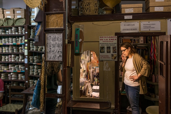 Aunque la tienda está presidida por los bustos del matrimonio Crespo, Manuela y Gregorio –abrieron la tienda en 1863, todo el edificio concebido como fábrica y venta de productos del cáñamo como cuerdas, sogas, cestos de esparto y yute– es la familia Garbayo quien la regenta desde antes de la guerra civil. El hijo de los fundadores dejó el comercio a su sobrino y desde entonces todo ha ido sobre yute, cáñamo o lo que las alpargatas necesiten, porque esta es una saga muy alpargatera. Ana también es de familia del negocio, de Cervera del Río Alhama, el pueblo de las alpargatas en La Rioja. Allí se conocieron los actuales dueños, en los negocios de sus respectivas familias. De la zapatilla que hasta los año 70 solo se fabricaba de un pie hasta las más sofisticadas de hoy –el suegro de la dueña sirvió encargos a Gucci– por su relación calidad precio, son una buena opción para todas las edades.