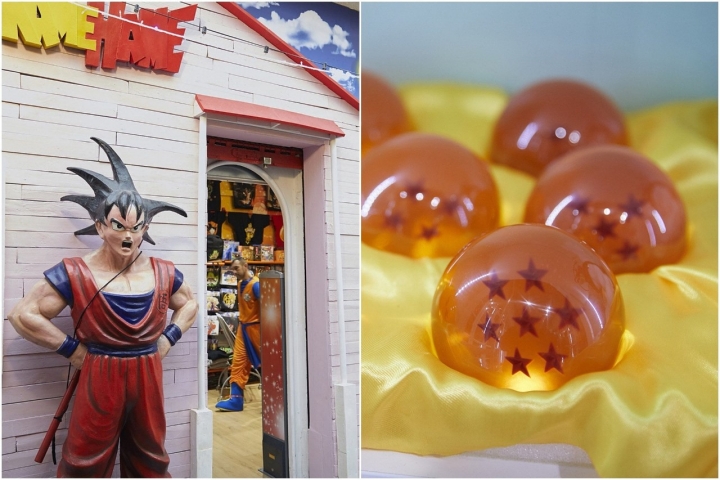 Para finalizar, no podíamos abandonar este pasaje de las Galerías Maldá sin darnos una vuelta por el mundo de Bola de Dragón entrando en 'Kame Hame Shop'. "Va a hacer 30 años que empezaron a televisar Bola de Dragón aquí en Cataluña, y los fans siguen como el primer día", cuenta Pedro, con su disfraz reglamentario. Aquí se pueden comprar las bolas de dragón y su radar para encontrarlas, figuras de edición limitada y una gran colección de gorras.
