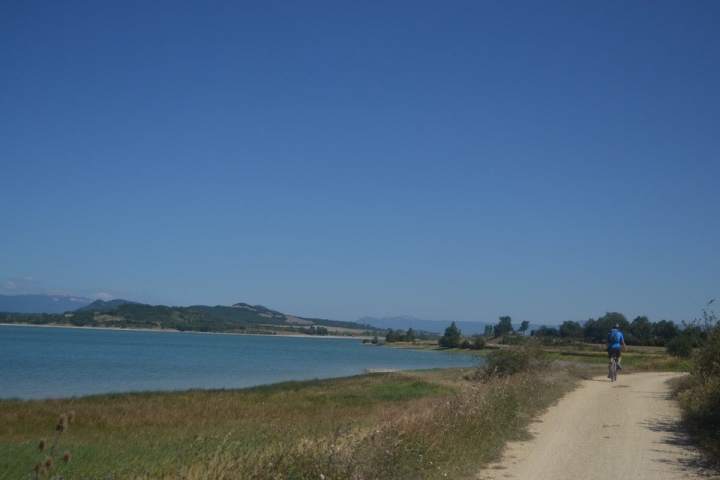 Hay dos rutas posibles, una más corta y llana en torno a la zona con más "playas" (recomendable para hacer con niños). Y otra para los que tengan ganas y fuerzas, que consiste en dar la vuelta al embalse mientras se disfruta de la fauna y la variedad de paisajes (desde humedales a playas con montañas en el horizonte, pasando por pueblos, iglesias e incluso yacimientos). Para esta segunda ruta preparad las piernas: son casi 50 km y da para todo el día (por lo que incluiremos almuerzo y la siesta en la orilla de la playa).