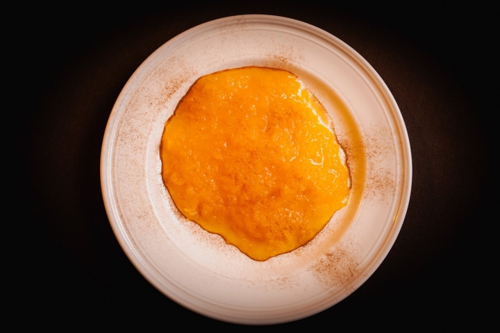 Primeiro, a Beterraba em diferentes texturas, leite de pinhão e sementes de mostarda: “É uma entrada vegan com temperaturas diferentes, o carnudo da beterraba que não tem o habitual sabor a terra, mais a resina do pinhão, tudo isso transporta-nos para um cenário rural muito especial”. Depois, o Pregado com arroz carolino à bulhão pato: “É um peixe muito especial, com uma gelatina que muitas vezes não é associada a uma coisa boa, mas que tem muita riqueza. E um arroz do mais português que há, mais a textura dos bivalves, é um bom exemplo da tal portugalidade que tento trazer para a cozinha, mas num exercício distinto”. E a Cabra “espertalhona”: “As sobremesas permitem brincar mais. A cabra é conhecida por ser esperta e matreira, esta é a protagonista de uma história, foi à cozinha da minha avó e rasgou a receita da chanfana para a qual estava guardada. Tem o leite de folha de figueira, a árvore para cima da qual fugiu. O algodão doce é o pelo da cabra. Os pedaços de crocante são a receita rasgada. Isto vem tudo da minha cabeça”.